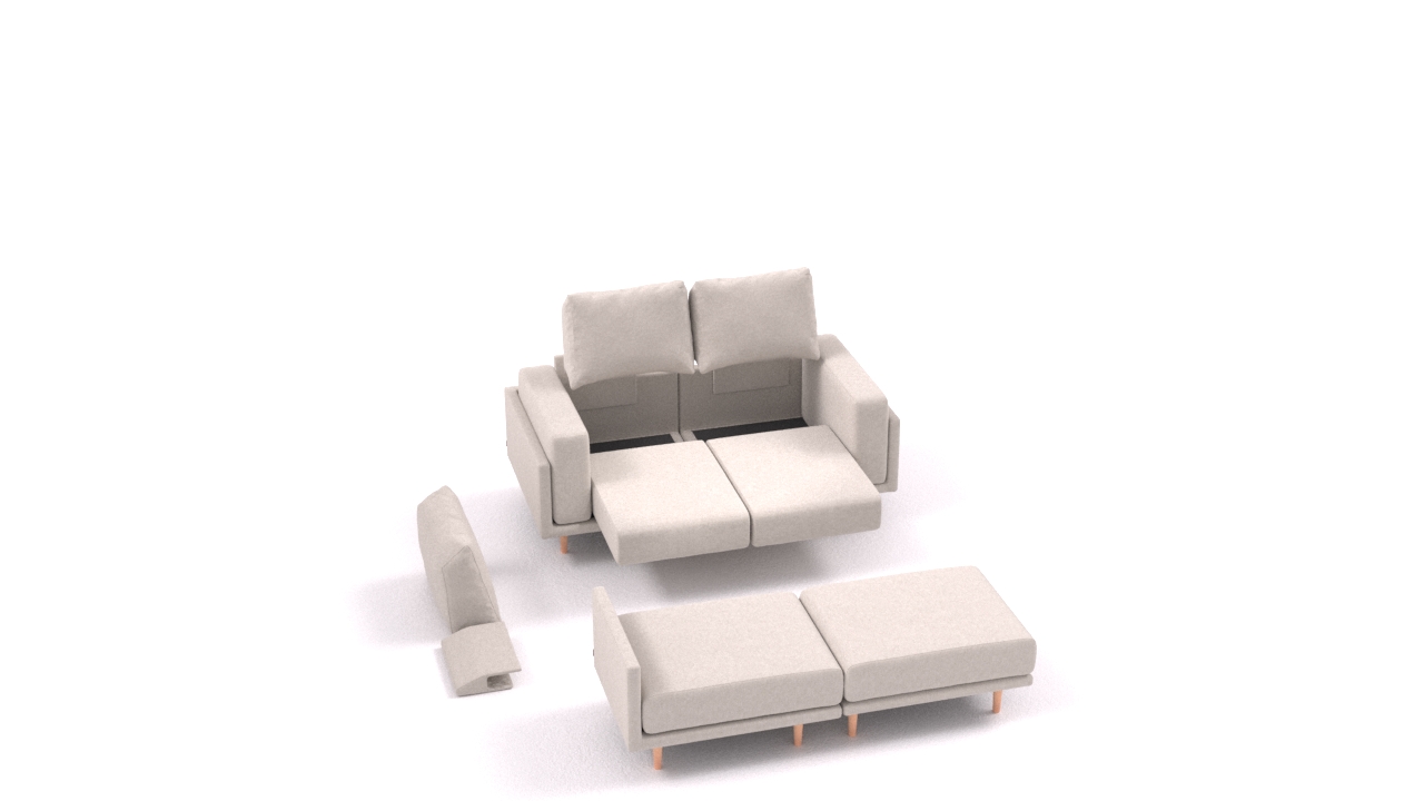 Per fissare gli elementi, basta posizionare le cinghie in velcro fornite sulle gambe del divano, dove gli elementi si incontrano.