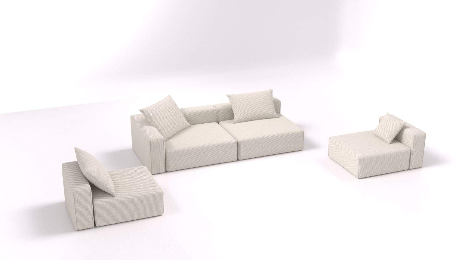Tutti gli elementi del divano componibile Bard sono completamente sfoderabili e lavabili, il che significa che possono essere rimossi e lavati (immediatamente a casa in lavatrice) o sostituiti parzialmente o completamente. Così il tuo soggiorno apparirà sempre come nuovo e in linea con il tuo stile fresco o il tuo nuovo appartamento.