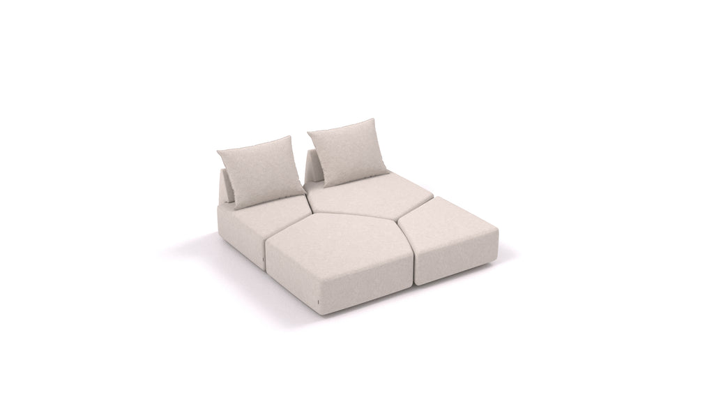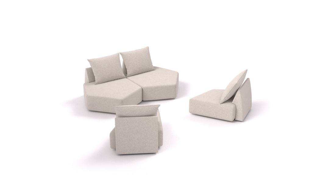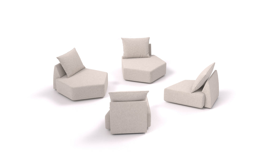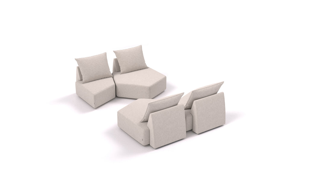 Gli elementi del divano componibile Matacao3 si collegano tra loro tramite connettori che si fissano tra i telai in legno nella parte inferiore, tenendo saldamente insieme le singole parti. Il sistema consente di creare diversi set e combinazioni di disposizioni in base al vostro spazio, alle vostre esigenze e ai vostri desideri.