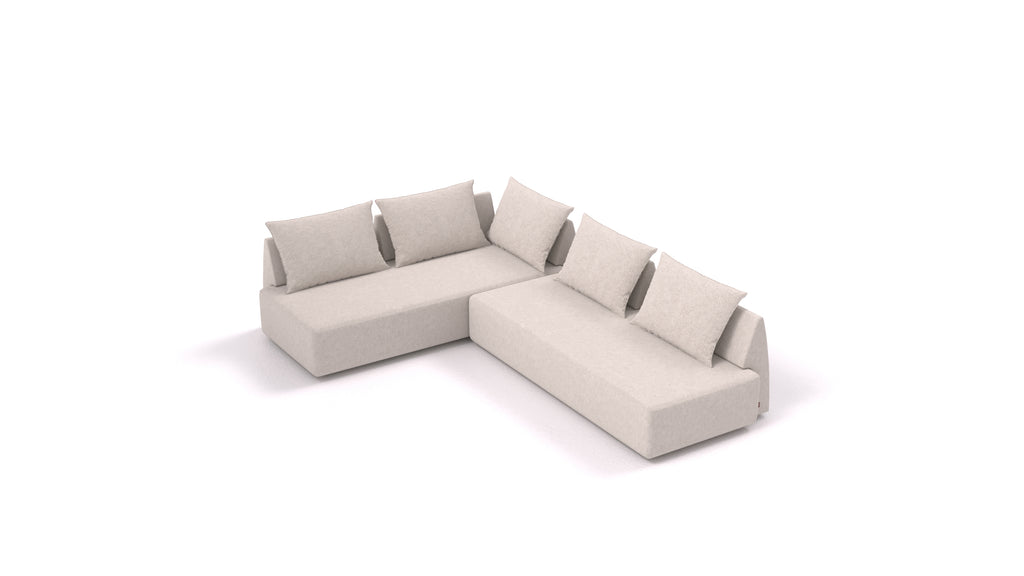 Gli elementi del divano componibile Matacao3 si collegano tra loro tramite connettori che si fissano tra i telai in legno nella parte inferiore, tenendo saldamente insieme le singole parti. Il sistema consente di creare diversi set e combinazioni di disposizioni in base al vostro spazio, alle vostre esigenze e ai vostri desideri.