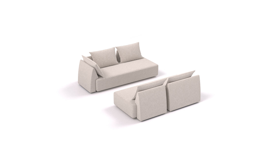 Twin è un set di sedute composto da due divani a tre posti che offrono quattro diverse configurazioni. Un unico sedile, molteplici funzioni.