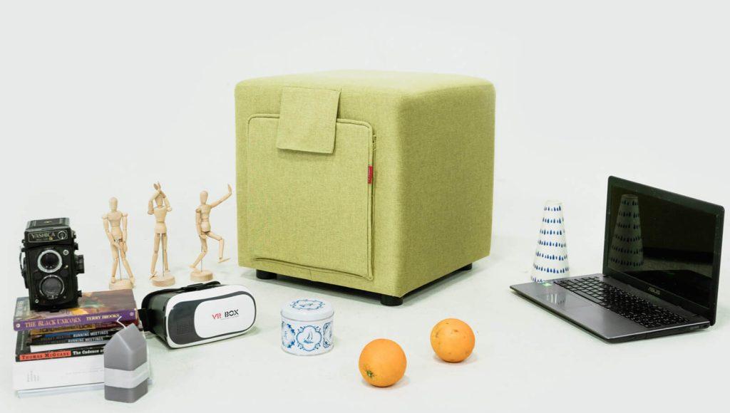 Lo sgabello Tuck è un mobile multiuso che può essere utilizzato come poggiapiedi, contenitore per riviste o elemento decorativo del soggiorno.